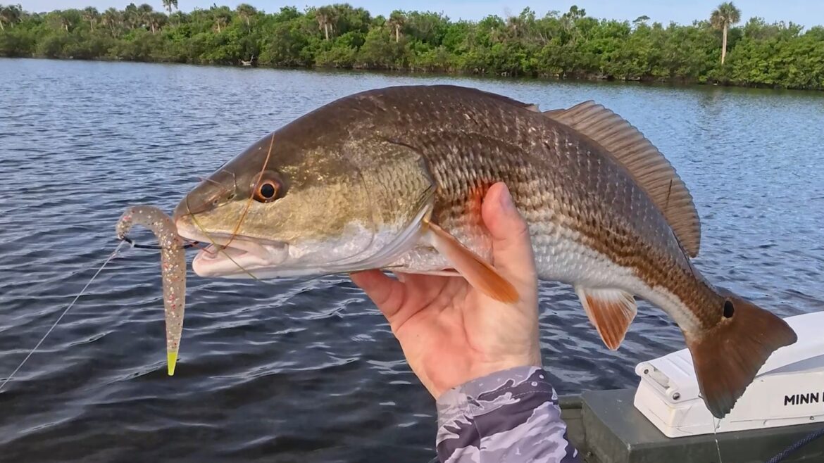 Chunk bait like cut mullet will catch a lot of different fish but you will deal with a lot of sharks. Cut crab is best if you’re specifically targeting reds without attracting the sharks. Big lures like the Skinny Lipper XL will do well during the lower light times and the Prawn rigged on a Hoss Weedless Football Jig head will catch fish too.