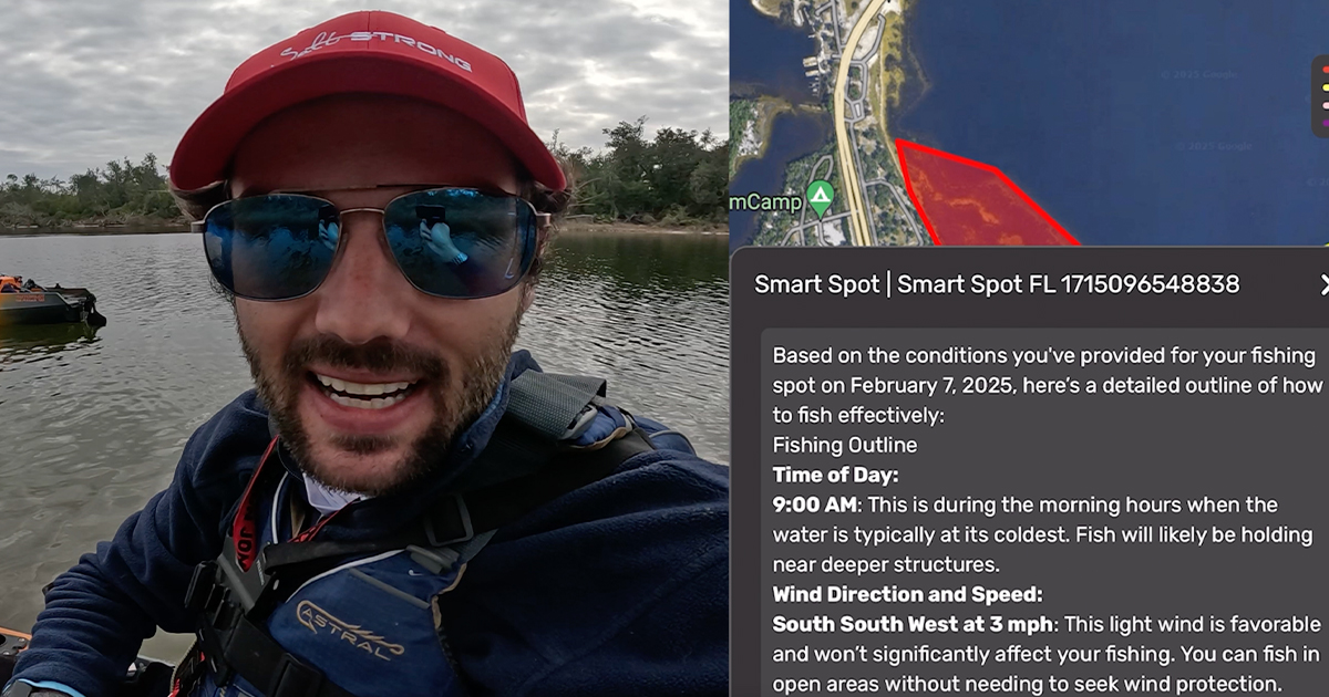 At this point, he was really starting to trust the AI’s recommendations. He cast right where it suggested and immediately hooked into a school of speckled trout.