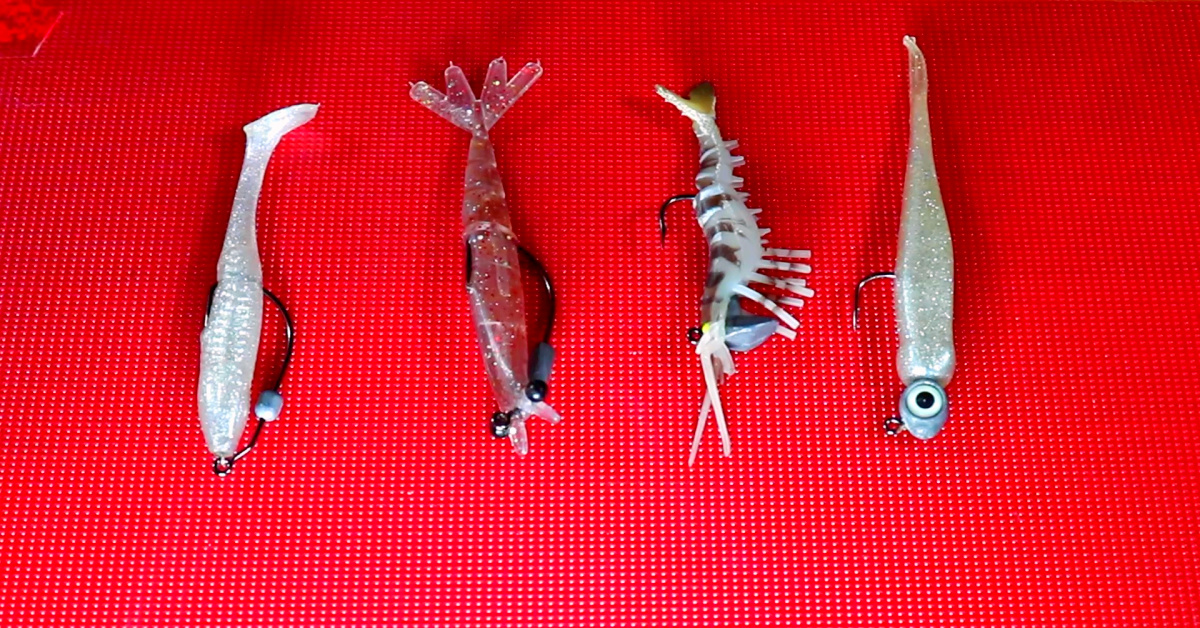 The best lure choices for low tide are paddletails and shrimp imitation lures to match the hatch.
