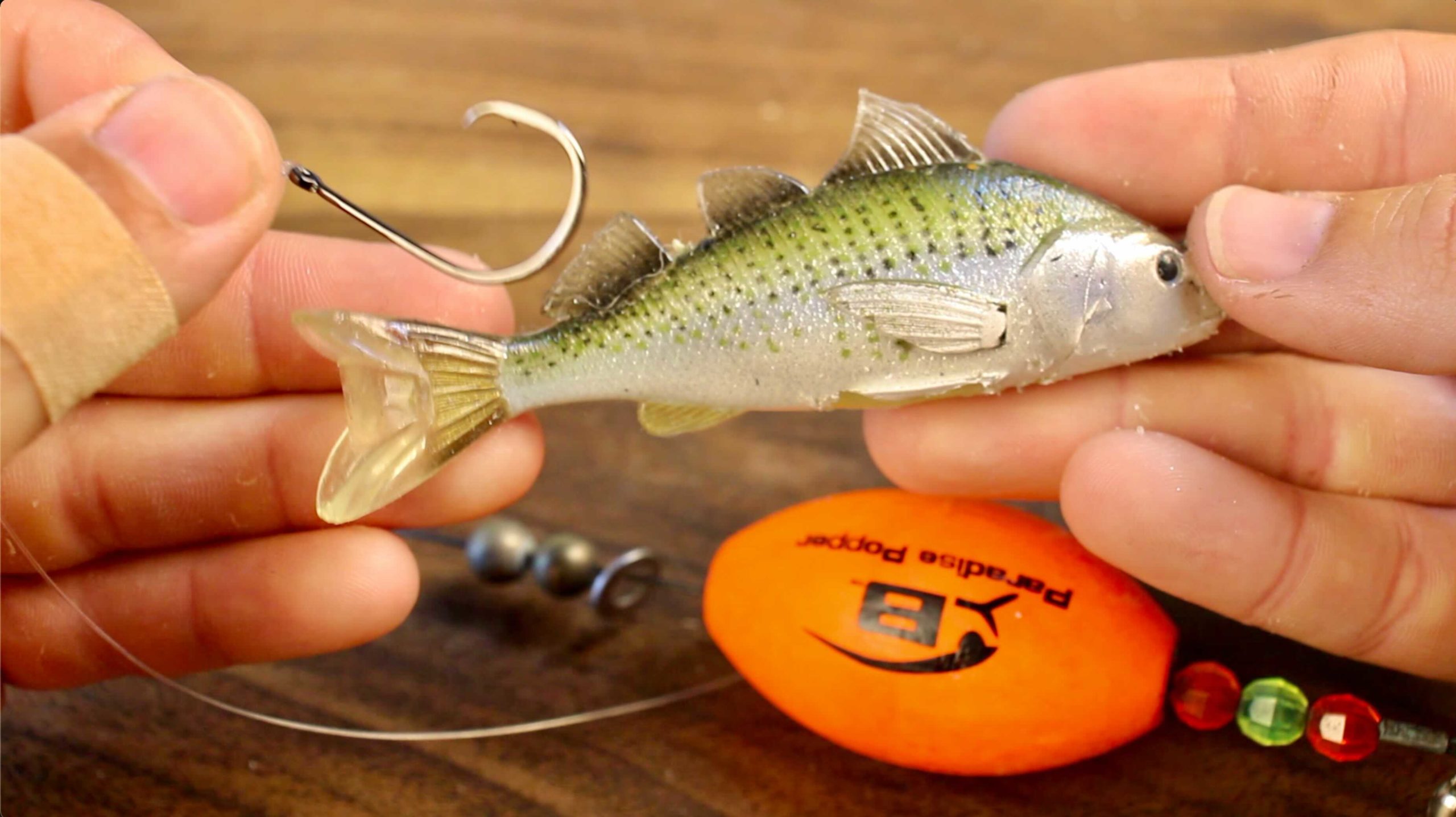 Rig the hook in the tail right above the lateral line and below the last dorsal fin.