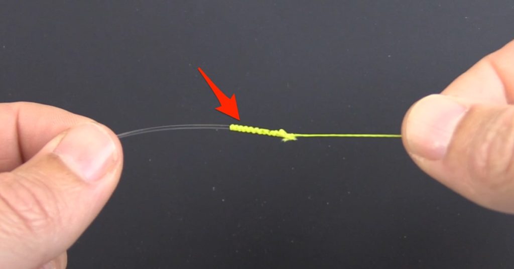 What you want to do next is tighten the knot down and you will see the braided line digging into the leader.