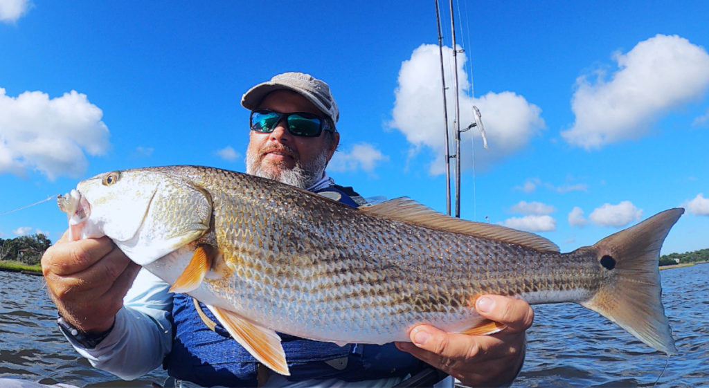 As I continued to work the lure back to me, the redfish was waking behind it repeatedly taking swipes at my lure.
