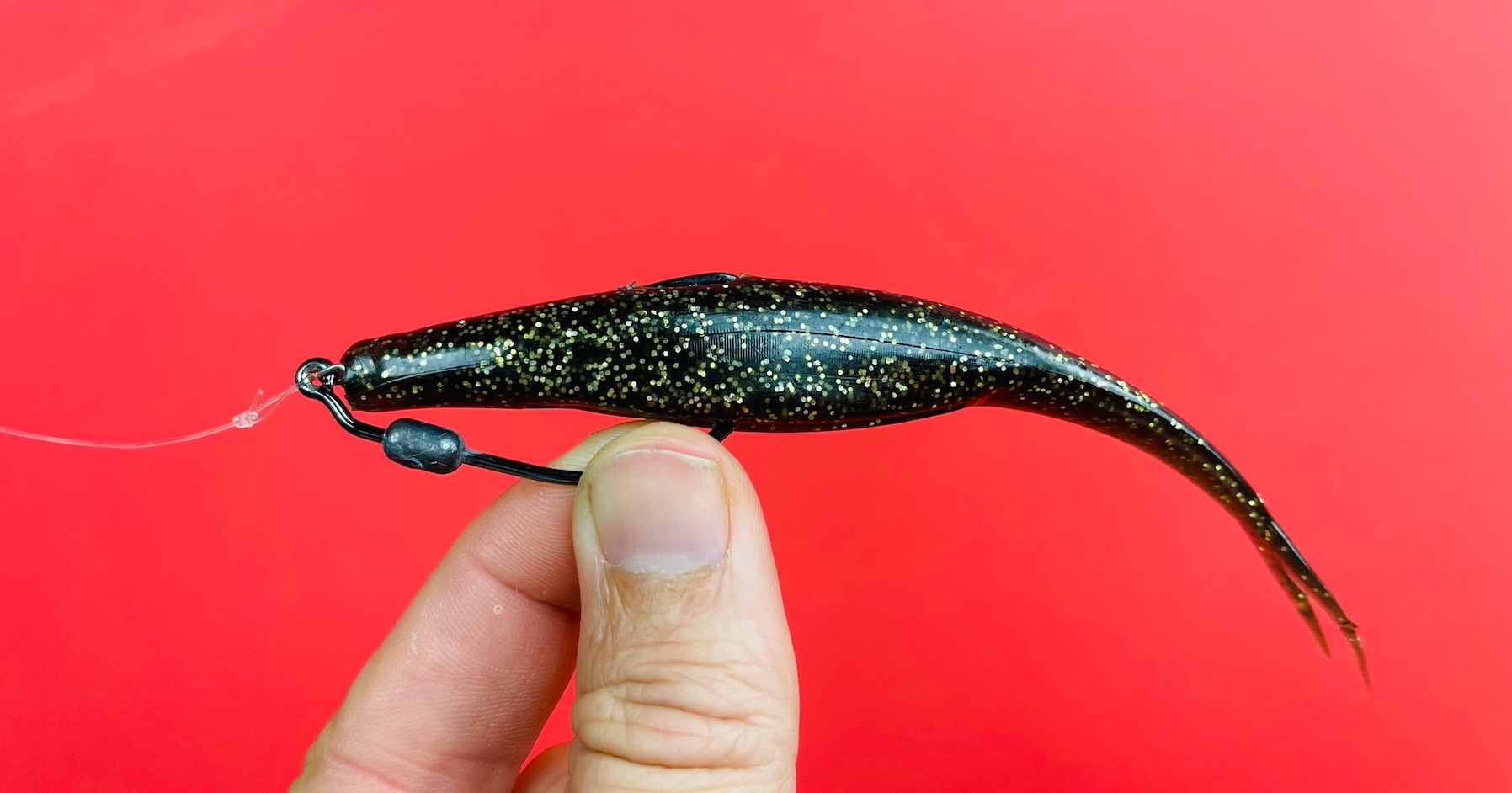 My favorite rigging method for soft plastic jerk lures in 3+ ft of water is to use a traditional jighead so it can dive down and be bounced along the bottom.