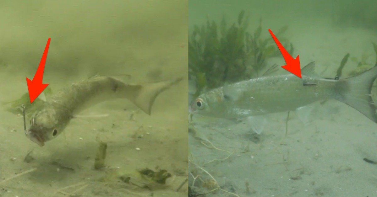Head vs. Tail Hooked Mullet: Underwater Comparison
