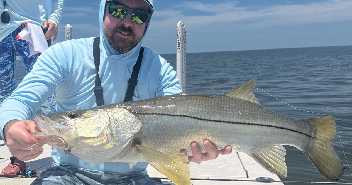 Within minutes of tying on the Prawn USA, the bite went from silent to non-stop. By the end of the day, we had trout, redfish, and capped it off with an overslot snook for an 80-inch slam.