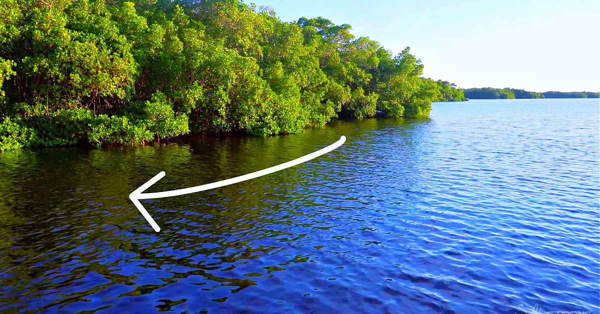 Another tactic is to throw the lure in front of a point right along the edge and swim it down current along the mangrove line.