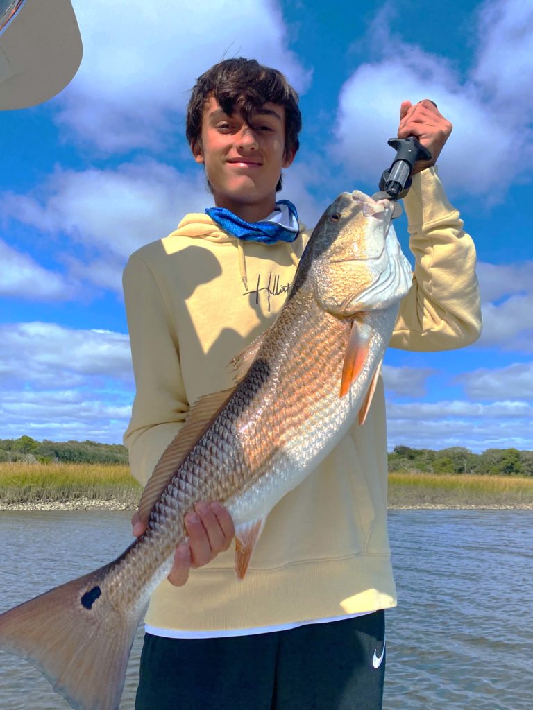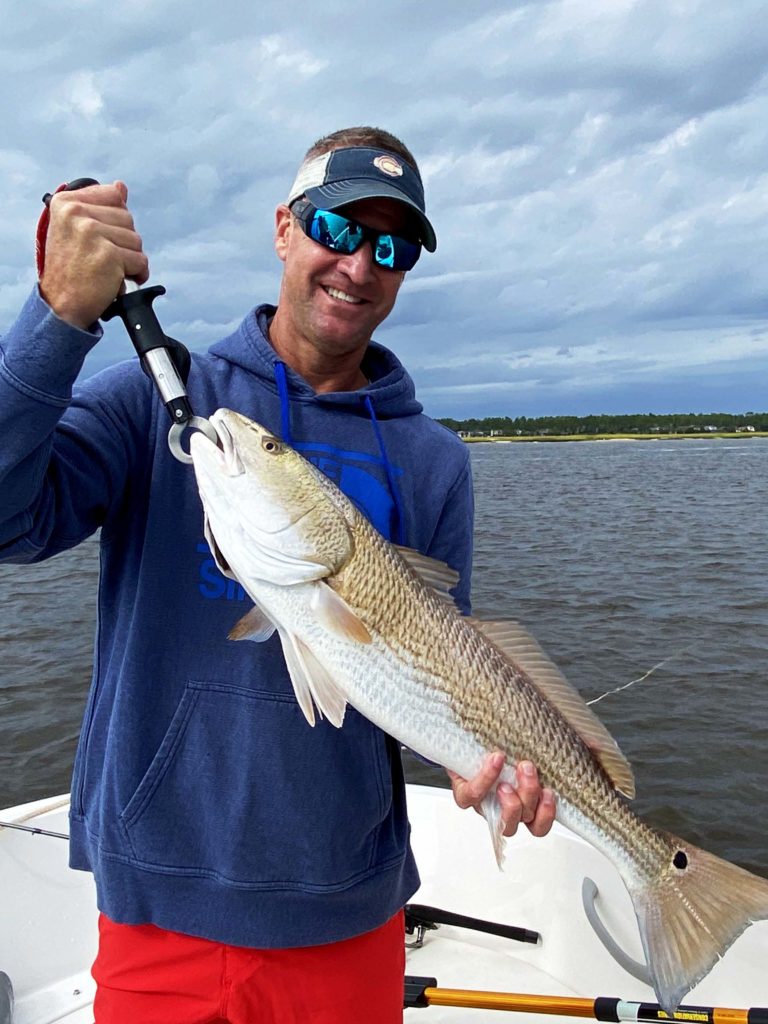 My son’s coach was able to catch a nice 28-inch redfish, his son caught his first redfish, and my son even got a 30-inch fish to show them how it’s done on his home playing field!