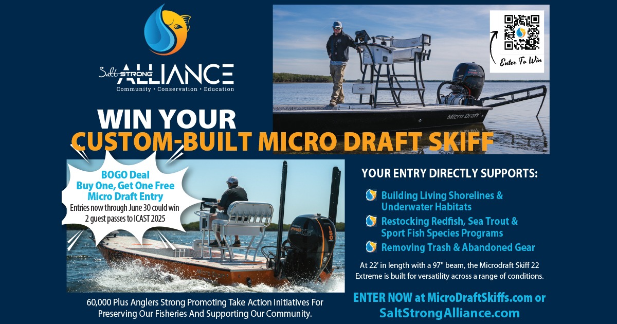 Because the Salt Strong Alliance just dropped our Micro Draft Skiff Raffle — and not only can you win a fully loaded Micro Draft 22 Extreme, but they’re also throwing in a BOGO deal AND a chance to win 2 guest passes to ICAST 2025 in Orlando!