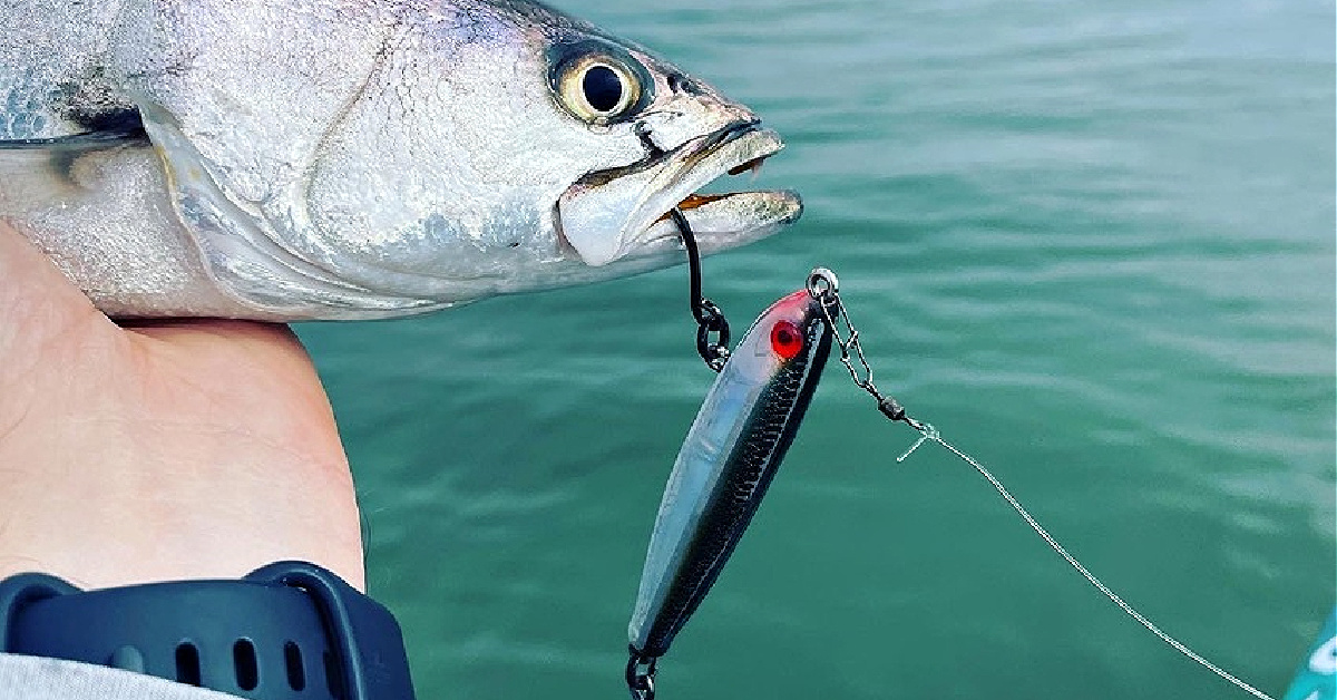 The bi-color tone used to paint the lure also resembles that of mullet and other small baitfish.