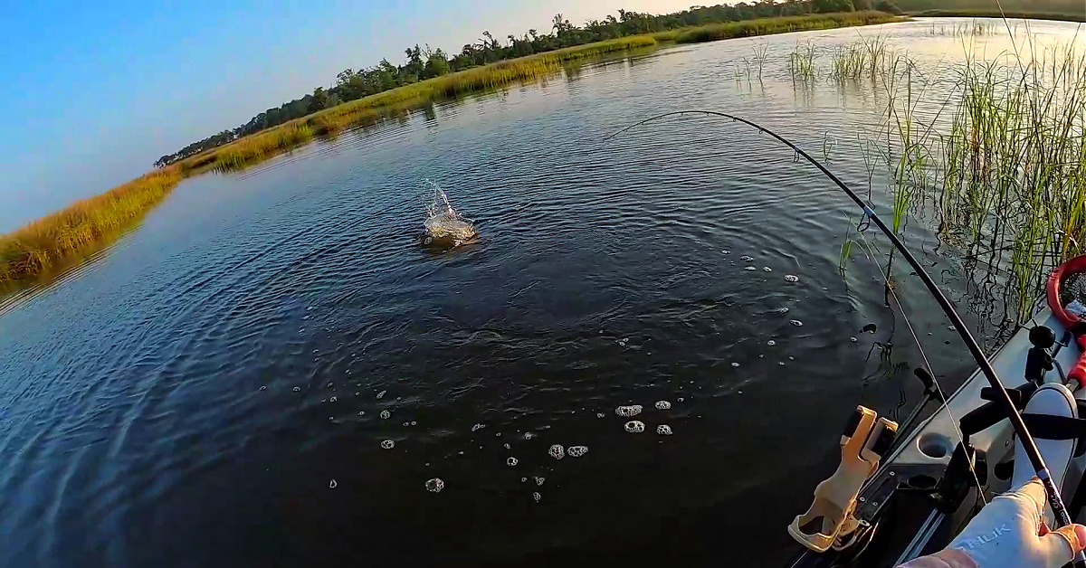 Later on, I came across a tiny chokepoint in the grass line and saw a redfish chasing down bait.