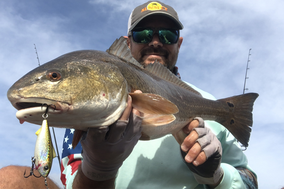 Fishing Club member Joe Lancaster with a nice redfish from this week (click here to see all of the fishing reports)
