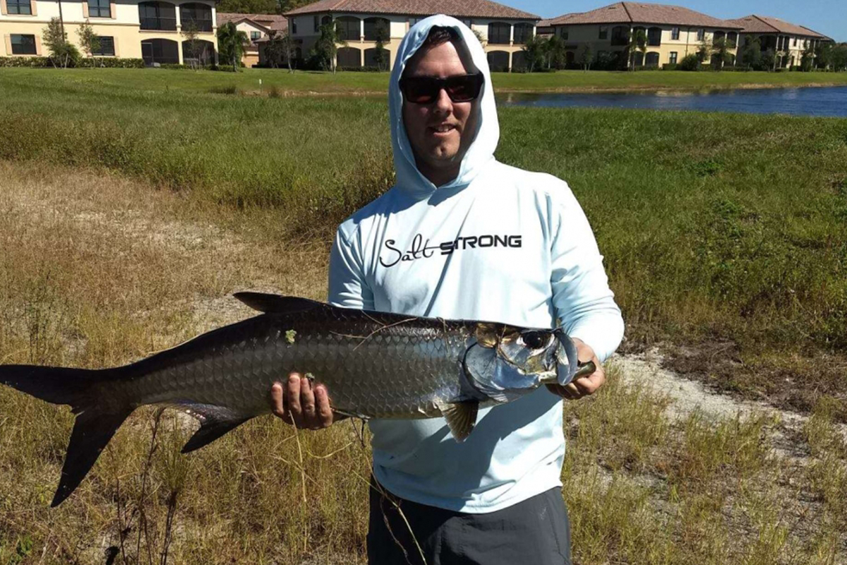 Fishing Club member Jon Sanders with a backwater juvenile tarpon (click here to see all of the fishing reports)