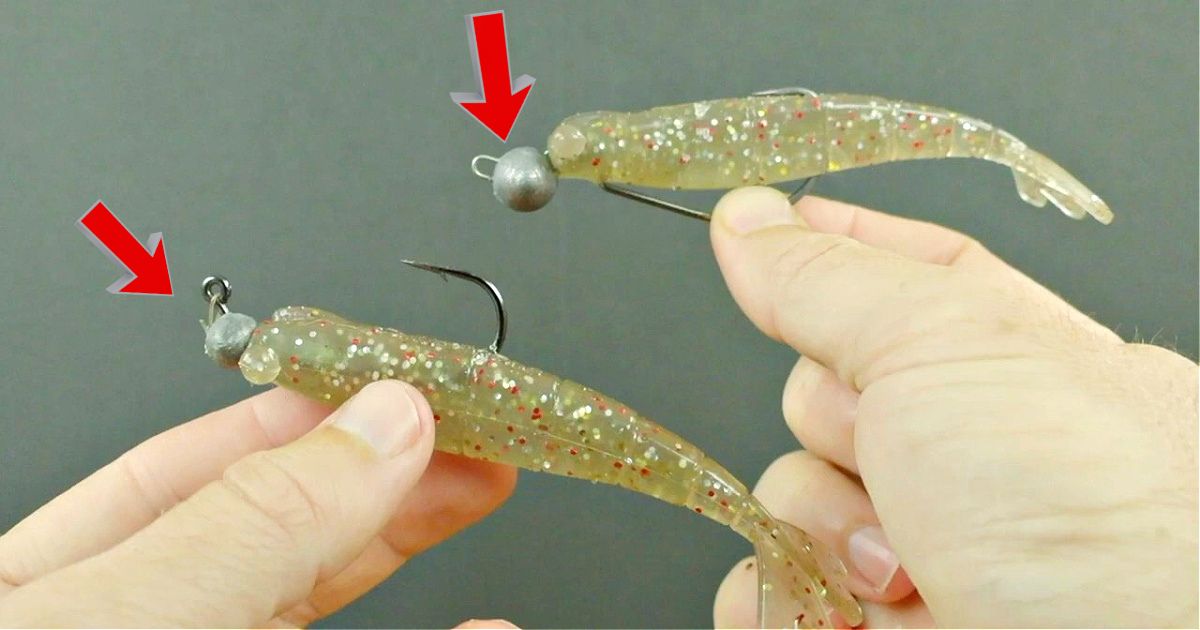 Number one, we want the head of the jighead to be fixed up against the soft plastic lure.