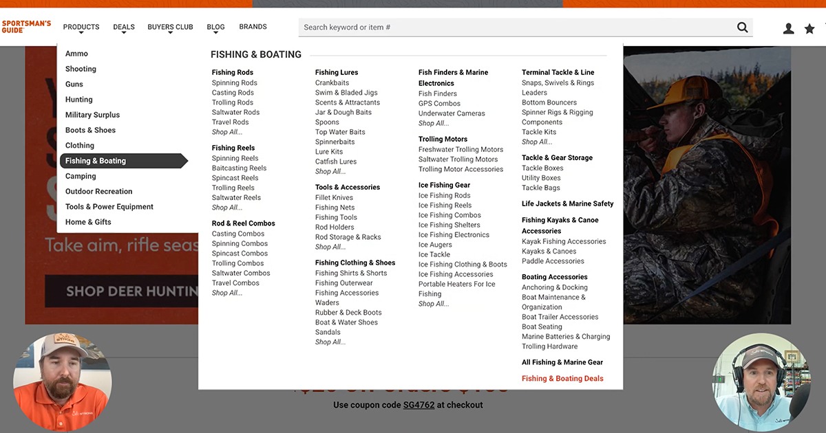 So not only will you never pay full price for your fishing tackle, but you’ll also get discounts on all of your hunting, shooting, ammo, and camping gear!