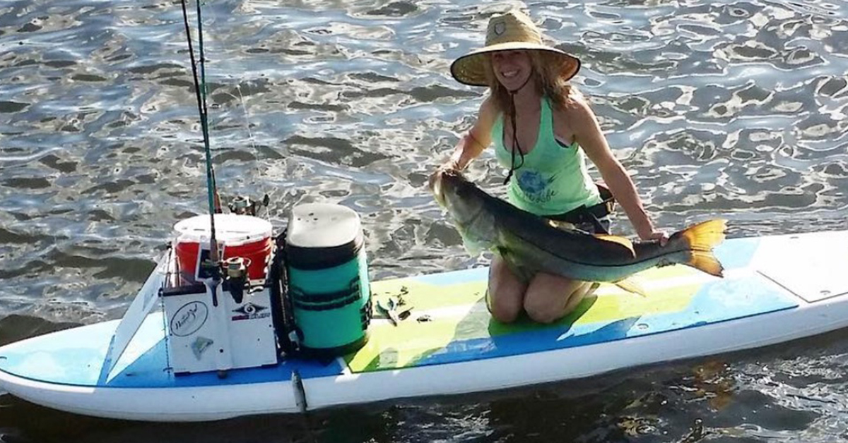 Once she got comfortable with the board, she began using it as her preferred means of inshore fishing.