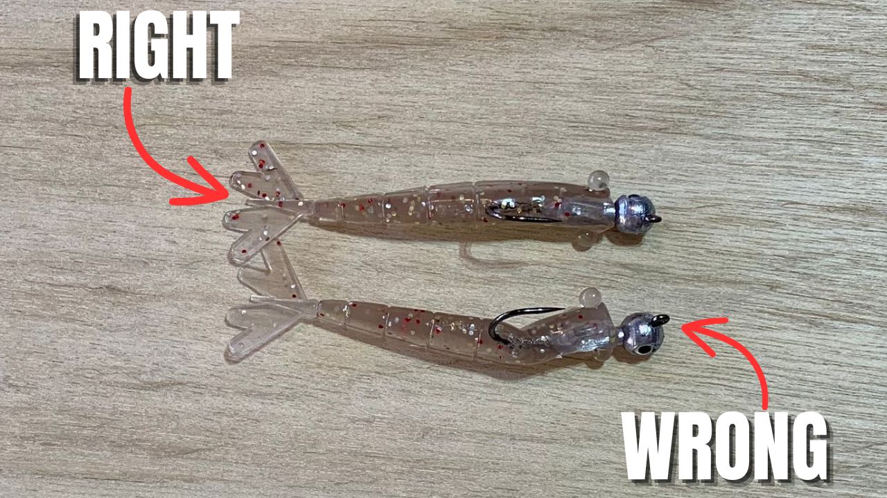 In this demonstration, I’m using a Prawn USA Junior lure and a Hoss Round Eye Jighead.