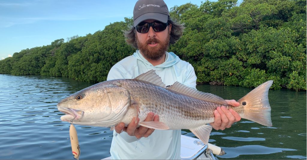 For lures like the Skitter Walk I was using in this video, you’ll usually use a 2/0 single hook, but by switching to a 1/0 single hook you can foul up your leader less often.