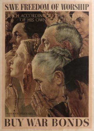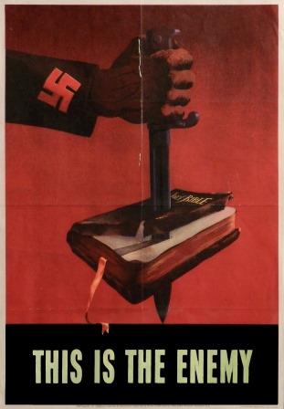 And after spending some time on a site called Wallbuilders, I came to find out that the government (led by a Democratic president) was circulating war bond posters that actually had images, descriptions, and even text that signified we were fighting to save our rights as believers in God (and even Jesus).