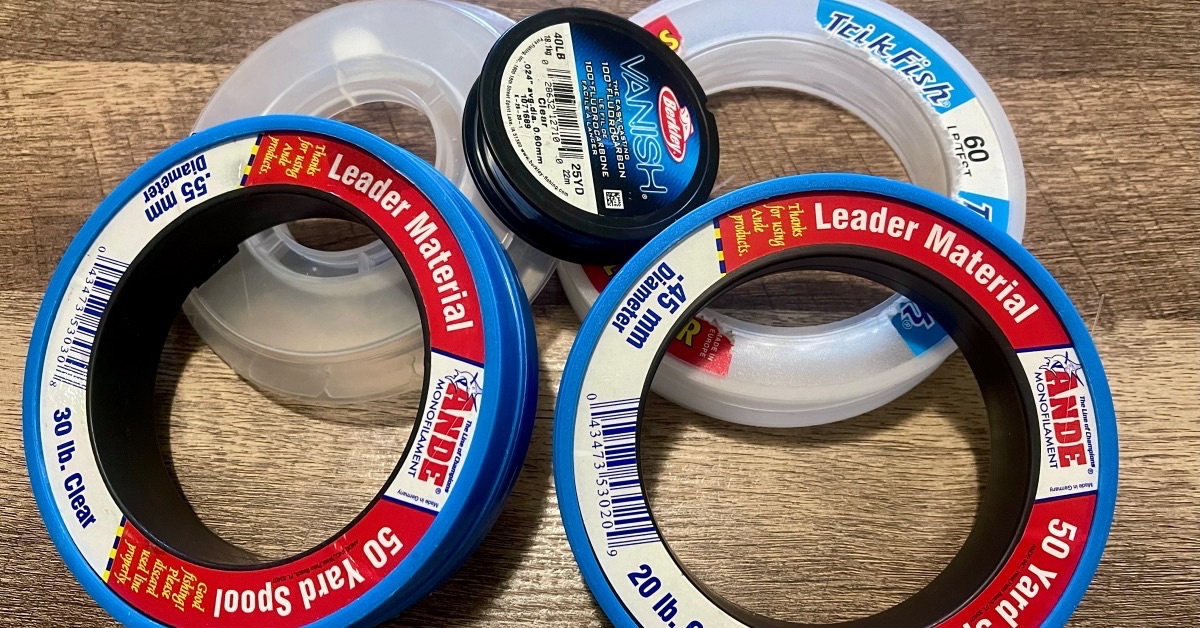 From what I’ve seen, “leader” material tends to be a bit more stiffer than standard line you would spool onto a reel. Softer material tends to hold up better against abrasion from what Luke has tested out.