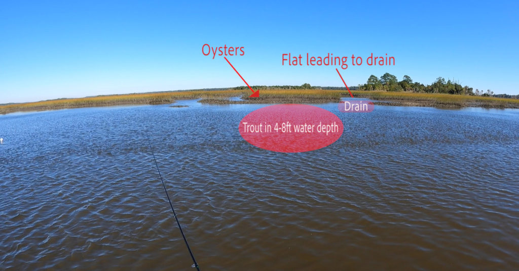 Was fishing a spot just like this in Beaufort SC this week, Fished without much success on the tidal flats where I live so we paddled down to the drain into deep water and ran into a school of trout on the oyster shelf’s next to the dropoff. It’s a bit of a paddle back against tide but worth the extra effort. Appreciate having a fish finder on my kayak to find these pockets for both the deep of winter and cooler water in the summer.